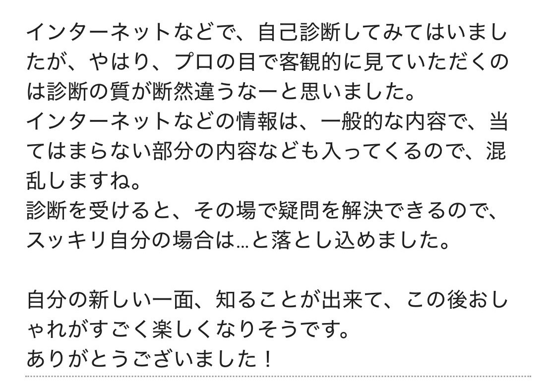 instagramにてお客様のお声や診断レポートをUPしておりますのでぜひご覧いただけますと幸いです。